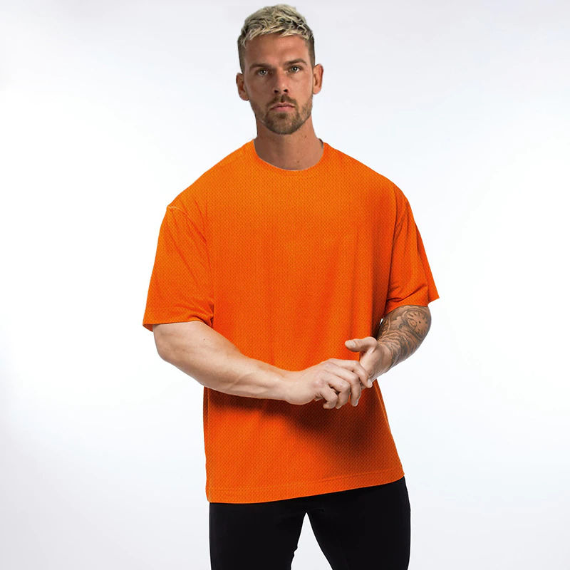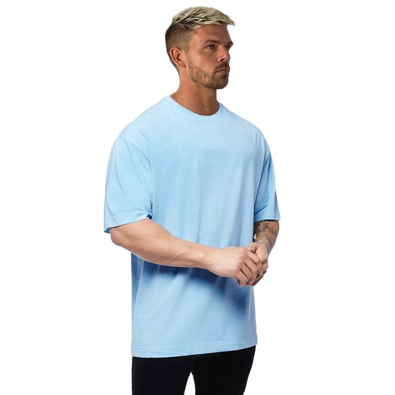 Haute qualité grande taille vêtements de sport t-shirts uni décontracté en maille à trois niveaux polyester et coton 100% coton teint tricoté hommes