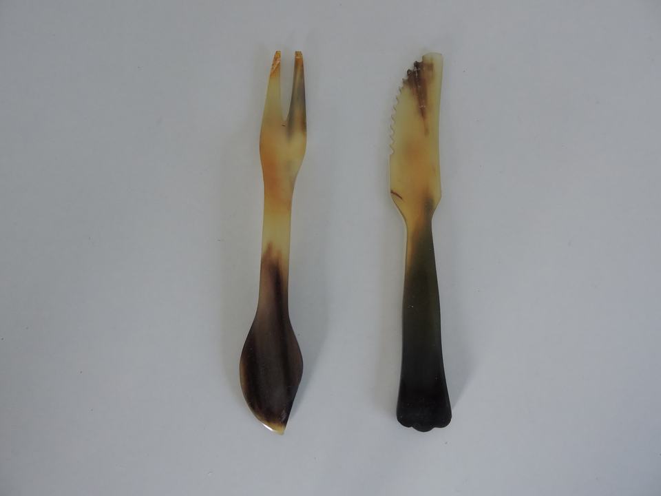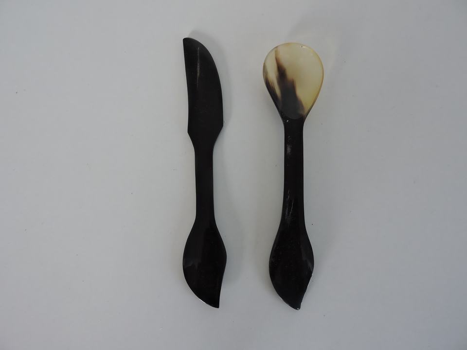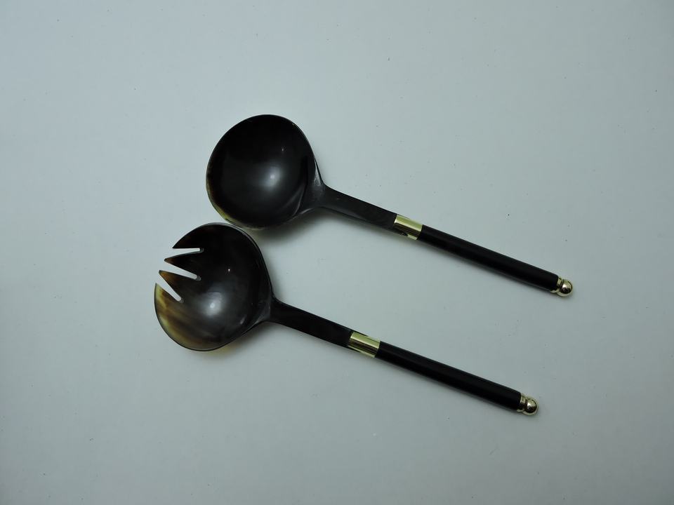 Ensemble de couverts à salade de haute qualité, modèle noir poli, cuillère et fourchette avec manche en corne, pour la cuisine, l'hôtel, Kitchneware