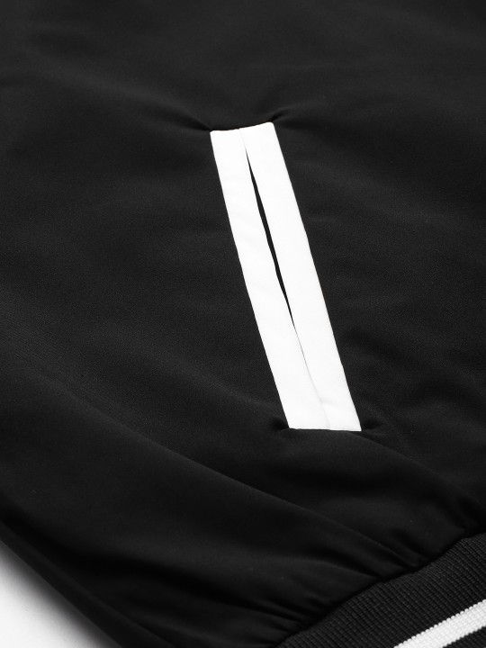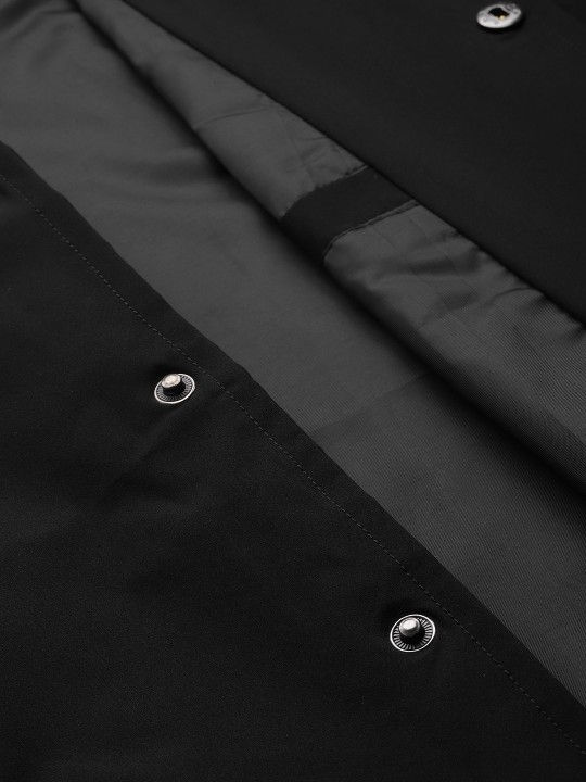 Veste universitaire de haute qualité en polyester de couleur noire pour hommes, col côtelé, boutons et lettres, veste de baseball universitaire, veste bomber universitaire