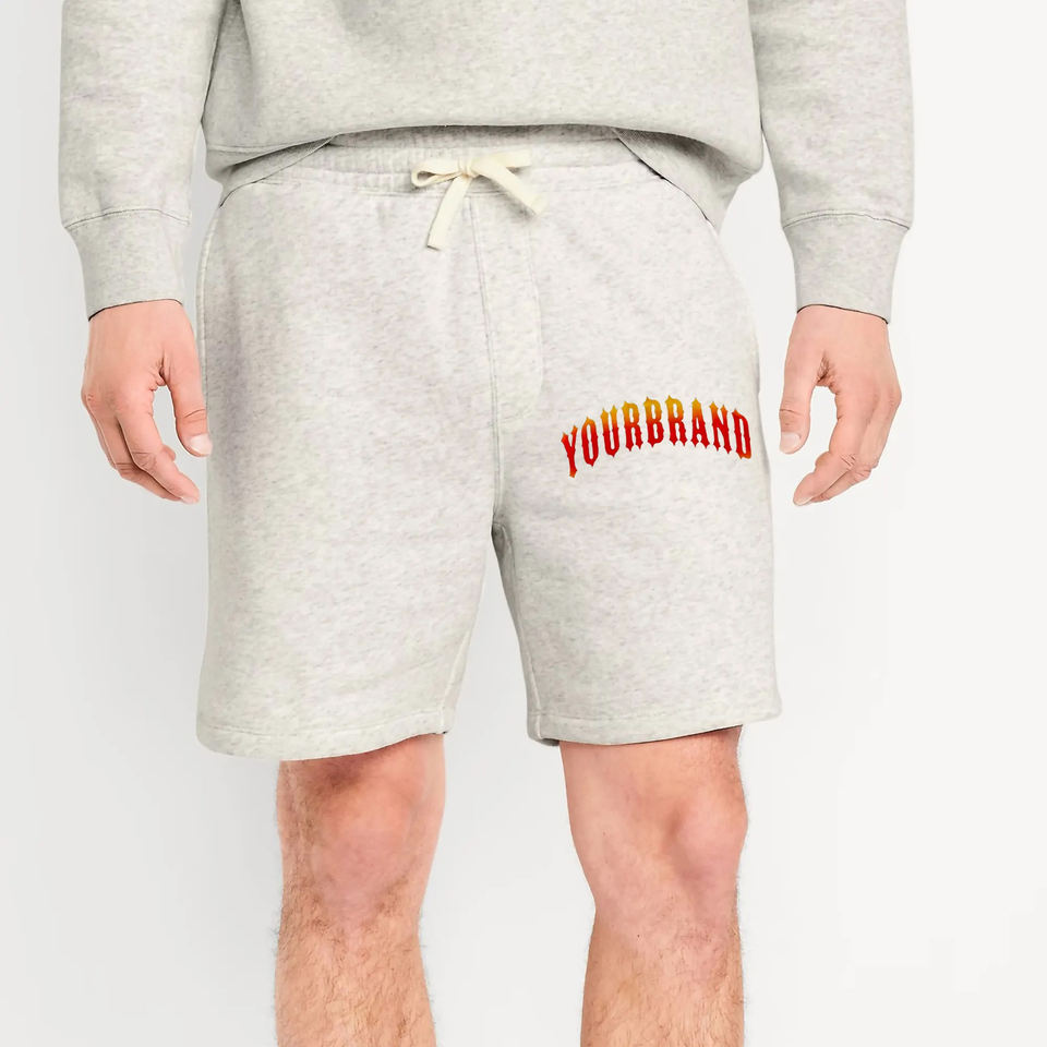 Shorts en molleton polyester/nylon de haute qualité, mi-élastiques, tricotés, pour hommes, couleur gris chiné, poches latérales, logo imprimé personnalisé, décontractés