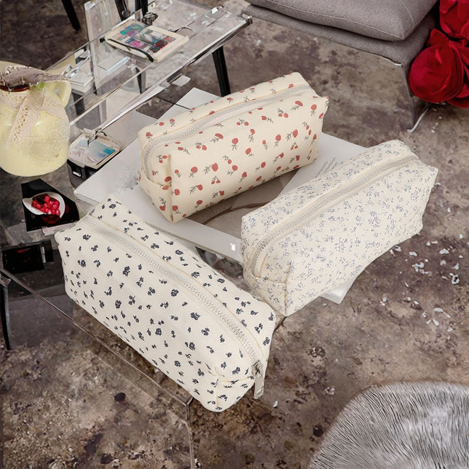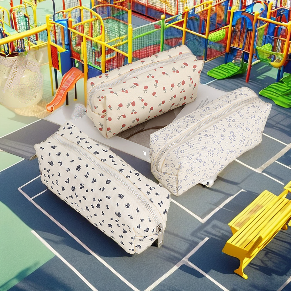 Sac de rangement portable en toile écologique de haute qualité, trousse à crayons à motifs, simple, pour fille, avec fermeture éclair, grande capacité, pour voyage