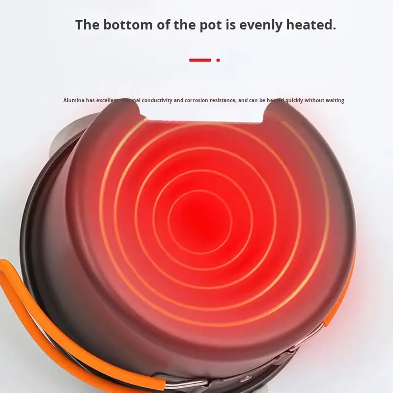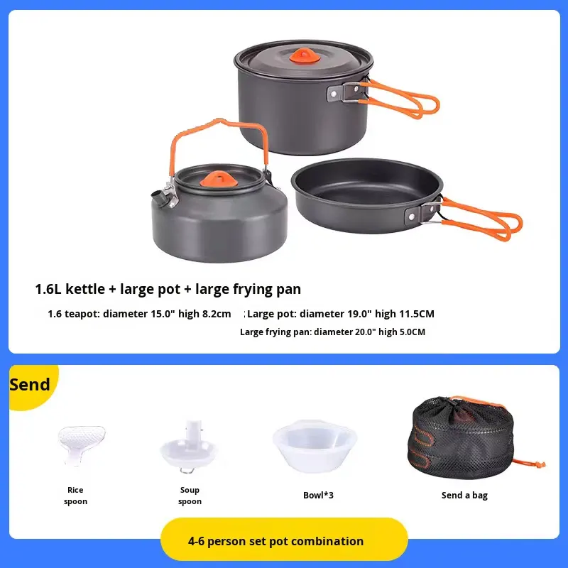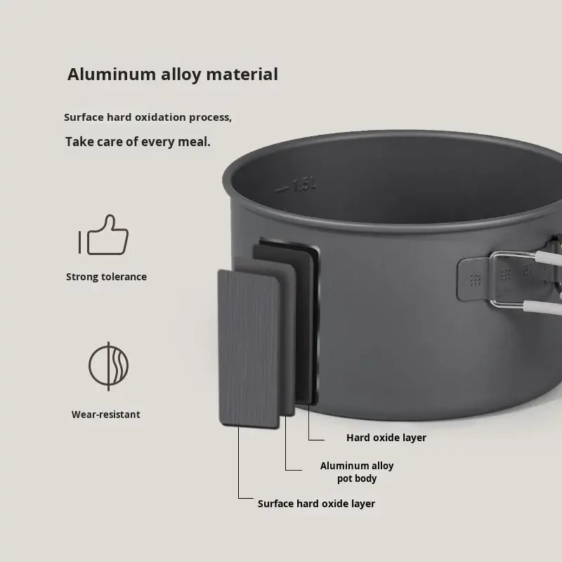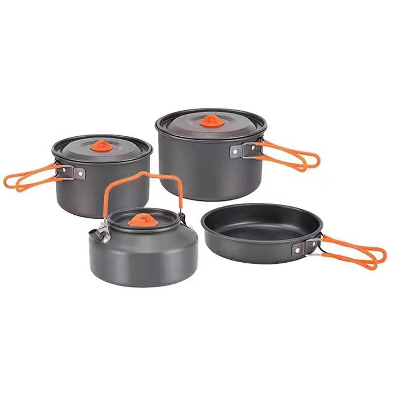 Ensemble de cuisine portable en alumine dure de haute qualité avec une casserole à couvercle unique en aluminium, une bouilloire à thé, ustensiles de cuisine pour le camping en plein air