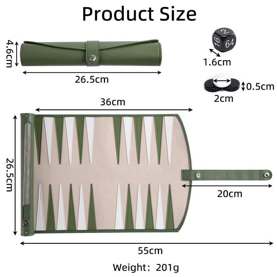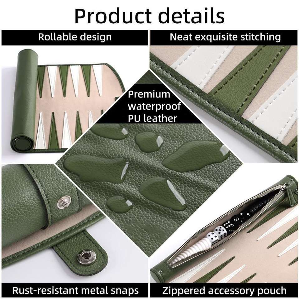 High Quality Portable Rectangle Backgammon Games Set Luxury PU Leather Roll Travel Board Handmade Foldable Eco-Friendly