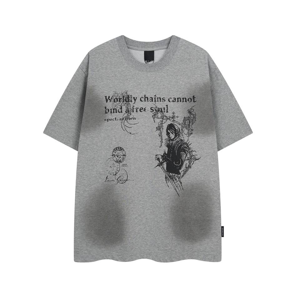 Streetwear post-apocalyptique de haute qualité personnage de dessin animé foncé 300GSM T-shirt à manches courtes lourd