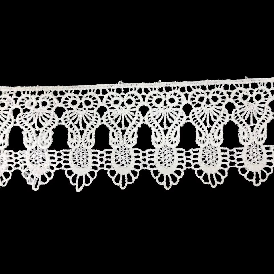 Ruban de dentelle en polyester blanc de qualité supérieure - Dentelle à bordure festonnée florale brodée vintage pour la couture, la confection de robes