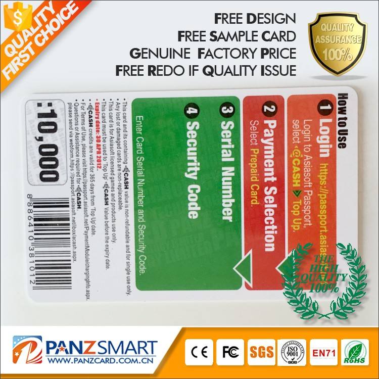 Cartes à gratter prépayées de haute qualité, gagnez des cartes à gratter, effectuez des jeux de cartes à gratter mobiles avec du PVC ou du papier.