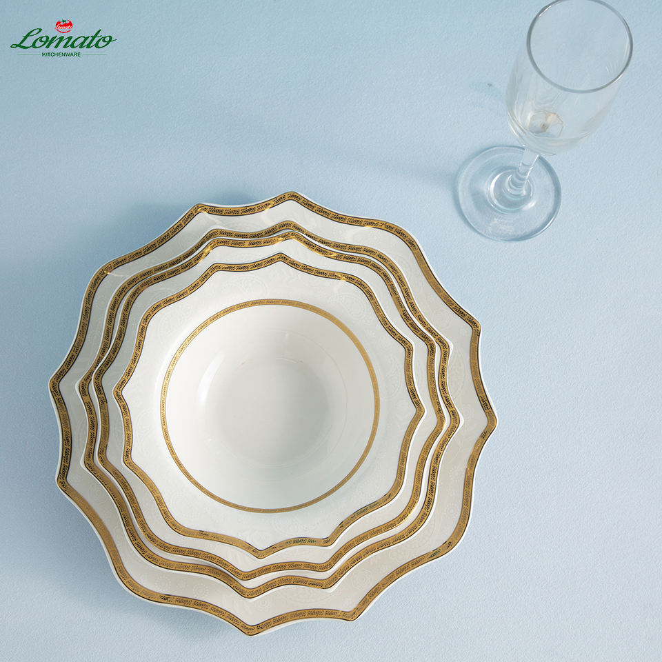 Ensemble de vaisselle en porcelaine de haute qualité assiettes de décalcomanie imprimées écologiques pour des tables élégantes et des célébrations festives