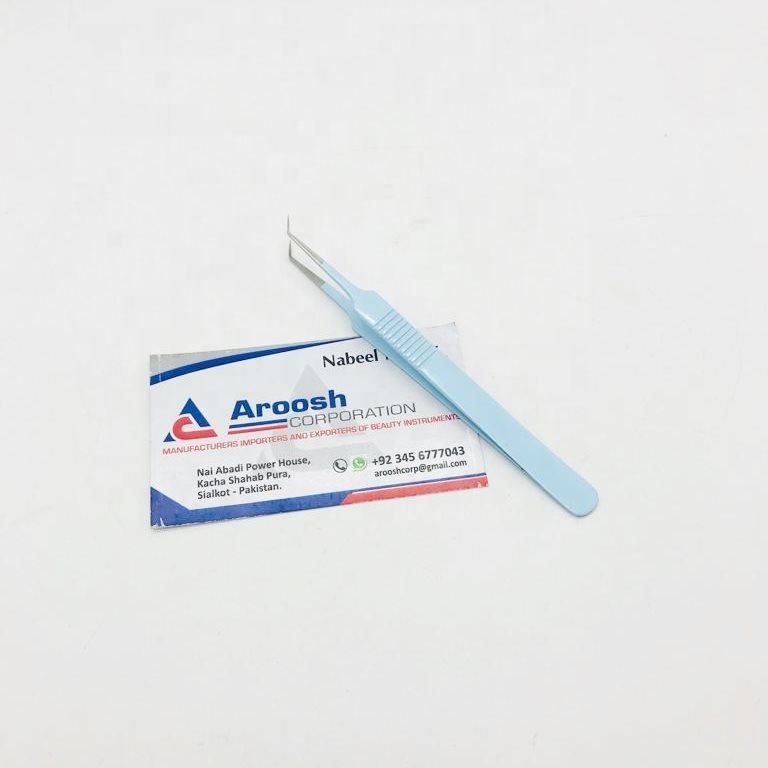 Pince à épiler professionnelle de haute qualité en acier inoxydable massif à 45 degrés, pointe fine, durable, pour extensions de cils, bleu bébé
