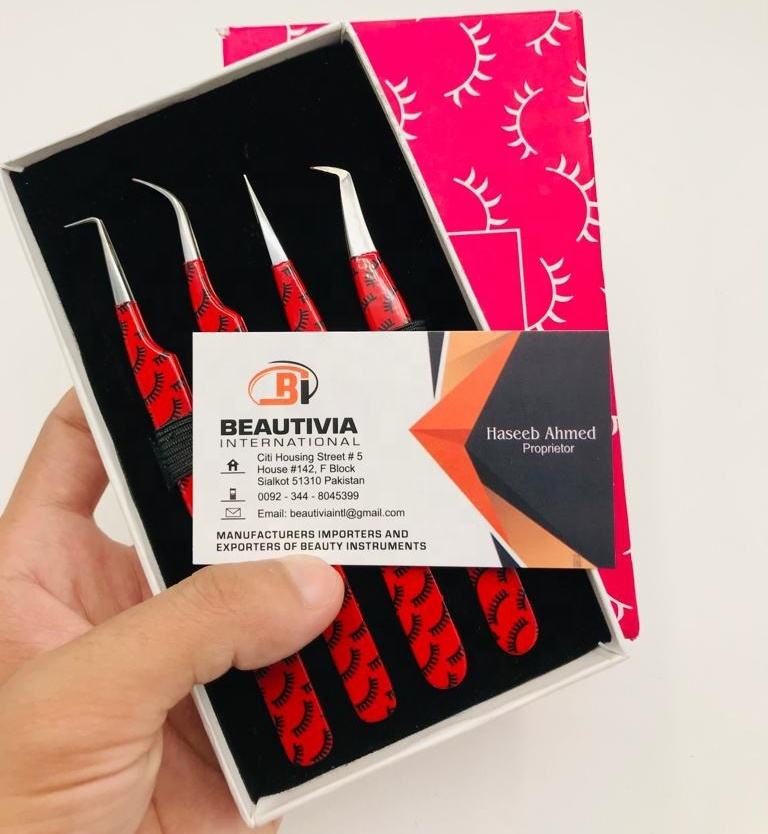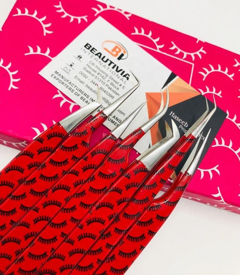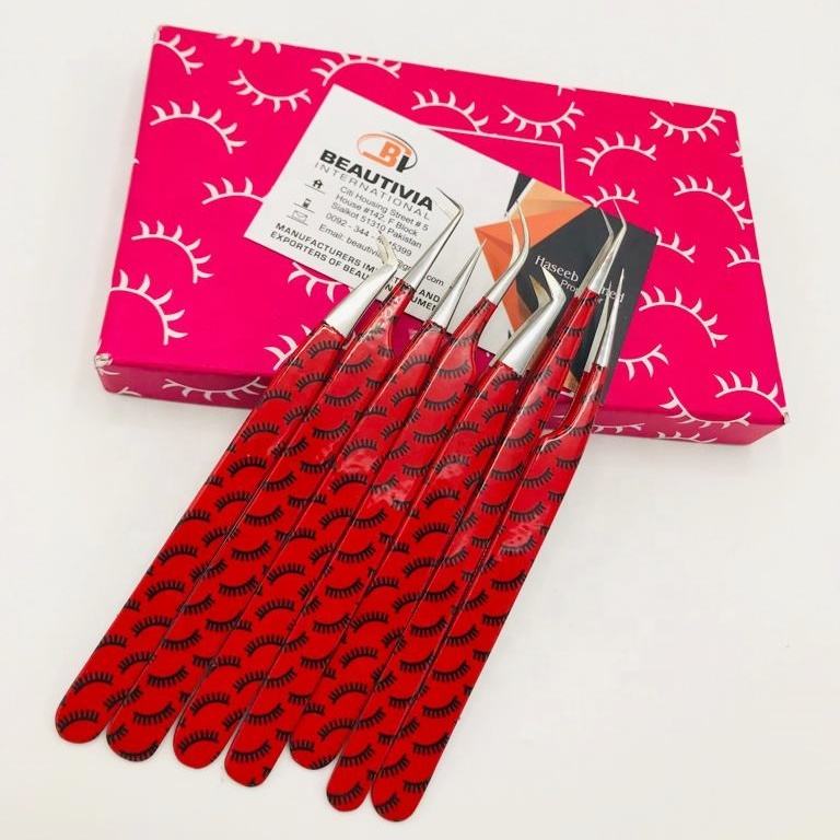 Pince à épiler professionnelle de haute qualité pour extensions de cils, avec impression personnalisée, marque privée, en acier inoxydable à pointe fine