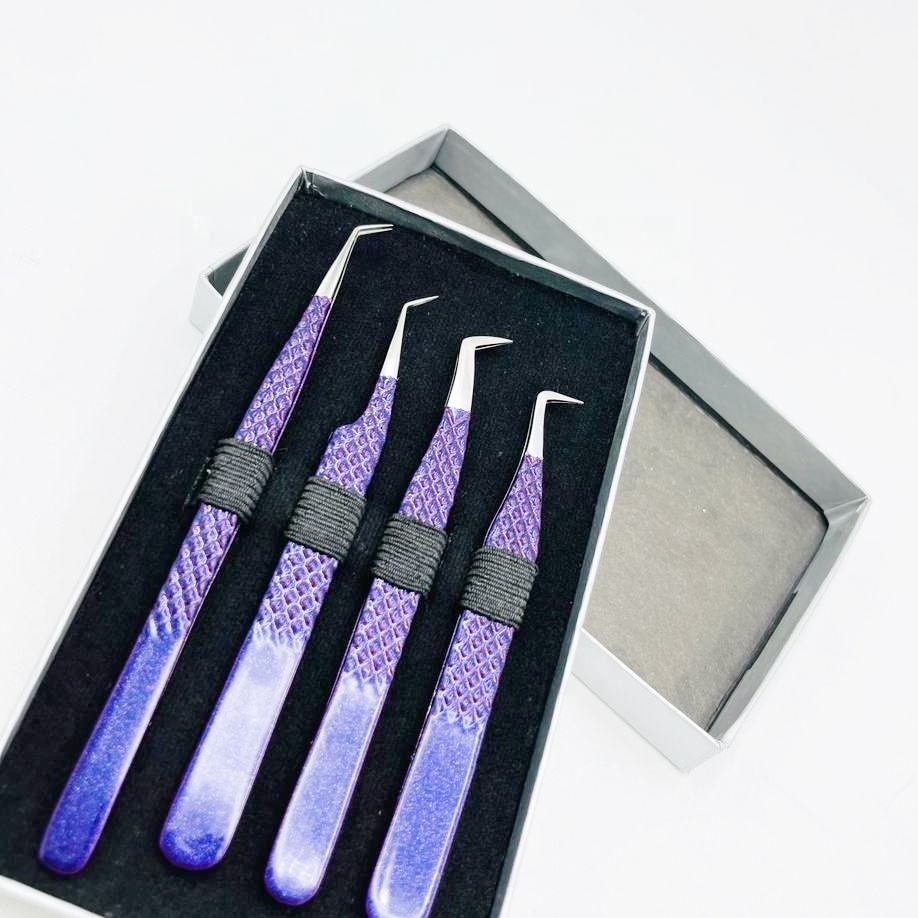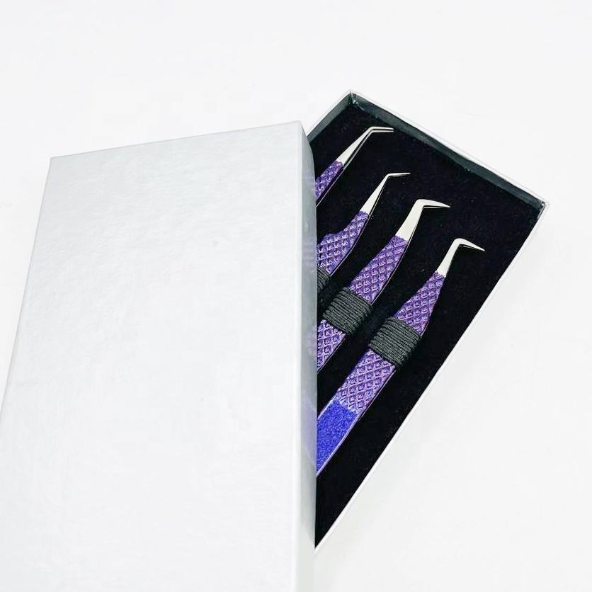 Haute qualité professionnel personnalisé Volume cils pince à épiler solide japonais en acier inoxydable bleu paillettes testé à la main pointe pointue