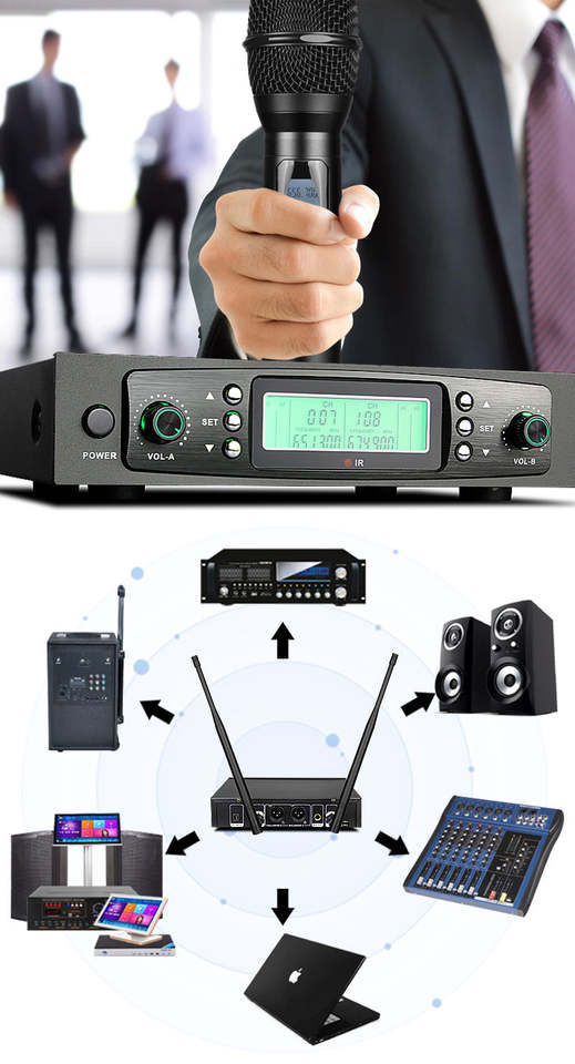 Système de microphone dynamique professionnel de haute qualité pour karaoké, microphone portable longue portée, micro-cravate UHF en métal et plastique