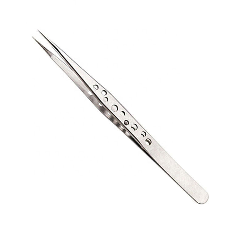 Pince à épiler professionnelle de haute qualité en acier inoxydable, pointe dentelée à prise diamantée, durable, logo personnalisé, finition argentée, 10 mm