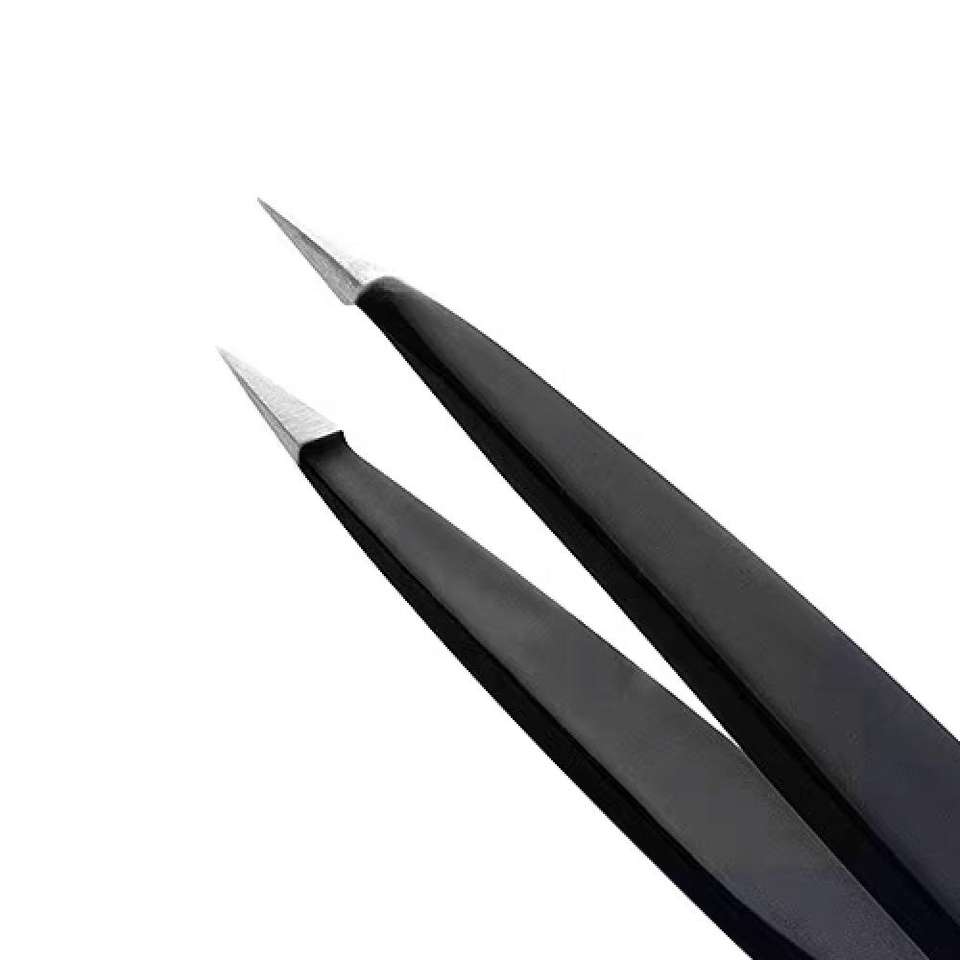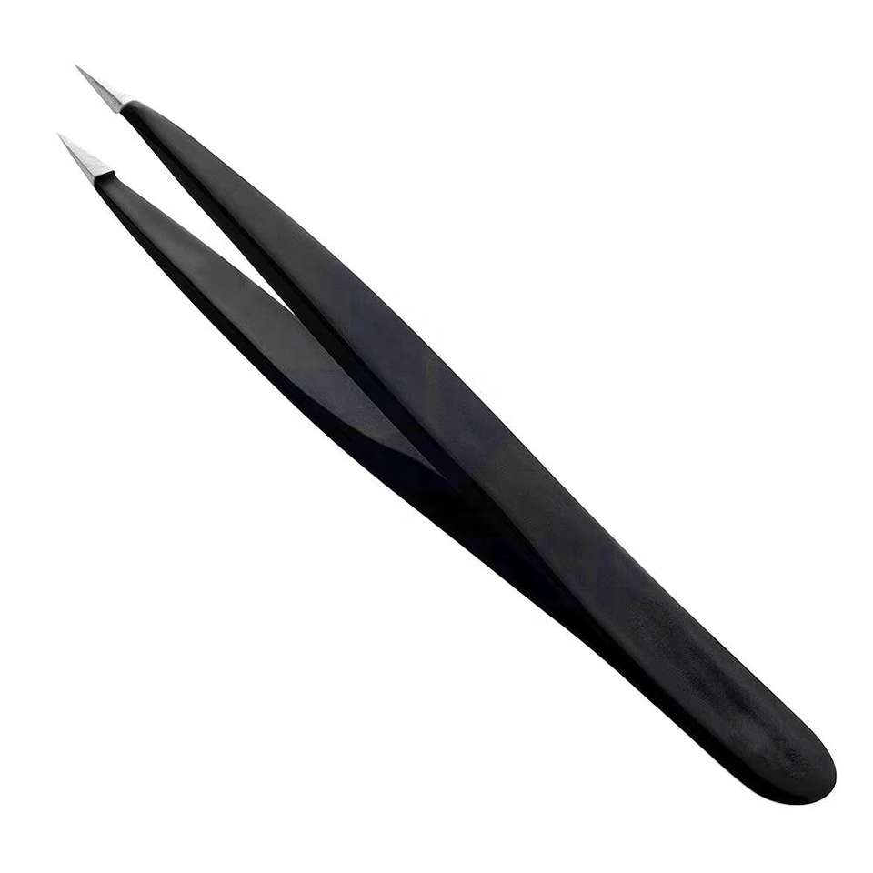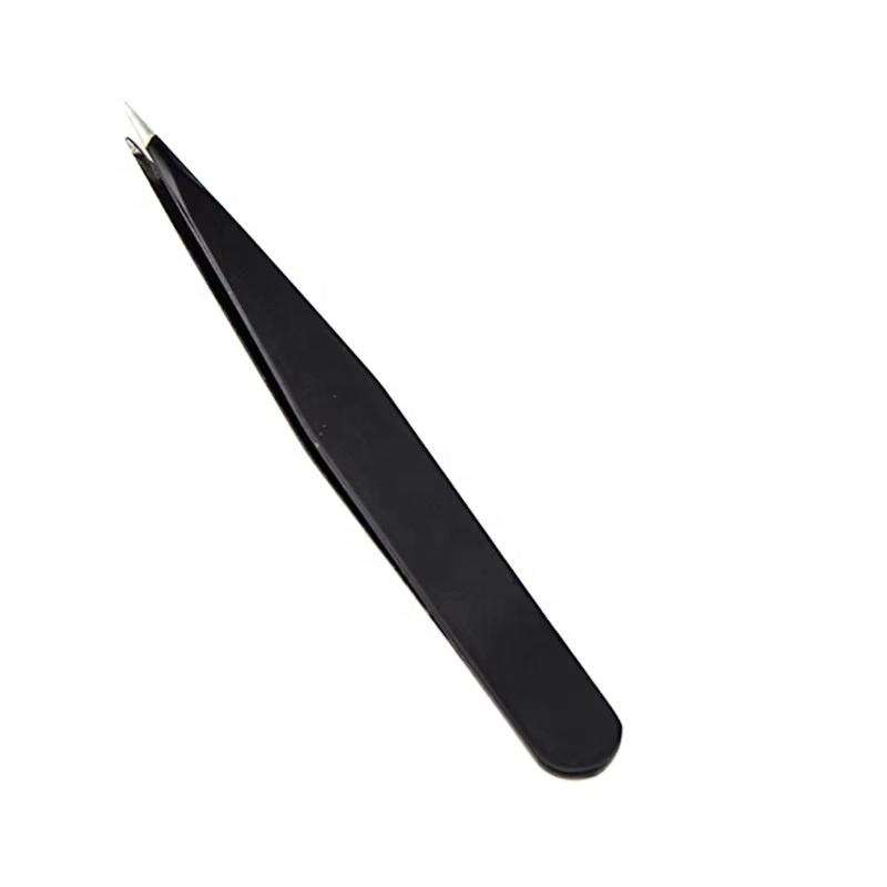 Pince à épiler professionnelle de haute qualité en acier inoxydable noir, à pointe fine, réutilisable, avec logo personnalisé, prix de gros d'usine