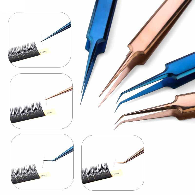 Ensemble d'extension de cils de haute qualité, design professionnel haut de gamme, acier inoxydable, or bleu, confortable, haute précision, pinces fines