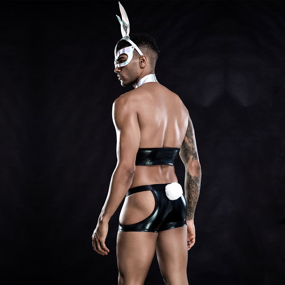 Sexy lapin hommes cosplay costume de carnaval avec masque