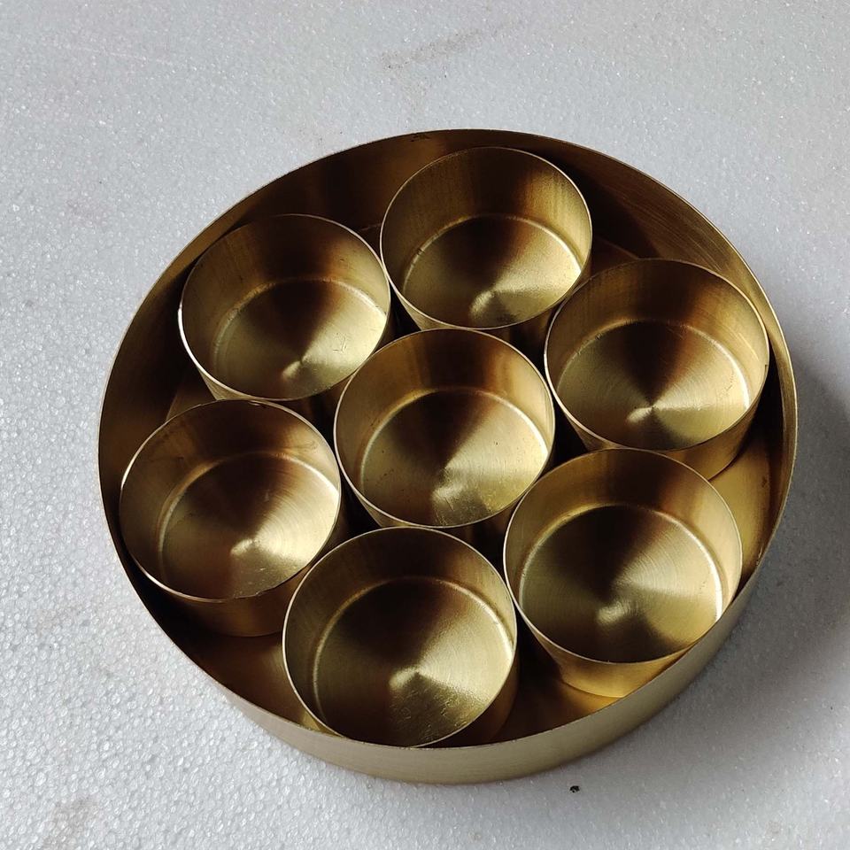 Boîte à épices en laiton pur de haute qualité, écologique, mate, 7 compartiments, organisateur d'épices, fruits secs, cuisine, hôtel, cadeau, nouveau look, garde-manger