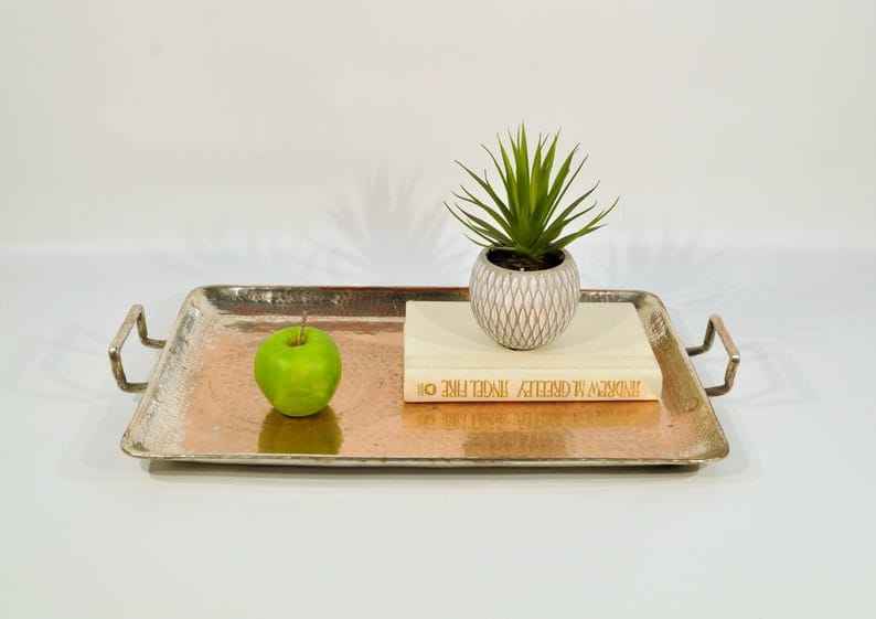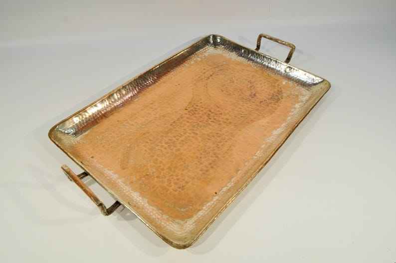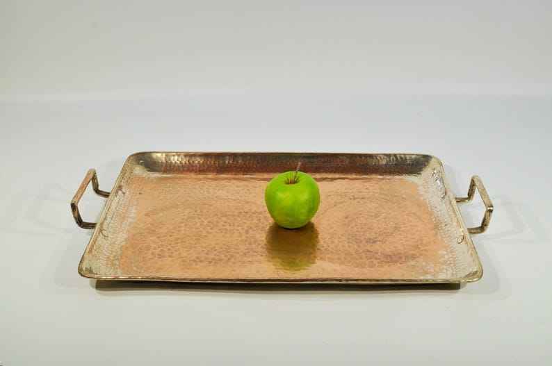 Plateau de service en cuivre pur de haute qualité avec design artistique pour les maisons vintage à la côte la plus basse par AALIYAN IMPEX