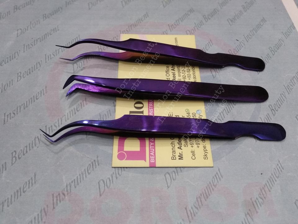 Pince à épiler d'extension de cils Plasma violet de haute qualité à 90 degrés pochette personnalisée pince à épiler en acier inoxydable de marque privée