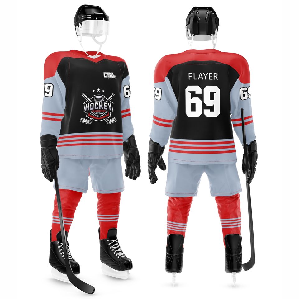Uniforme d'équipe de hockey sur glace en polyester à séchage rapide de haute qualité personnaliser l'uniforme de club de hockey sur glace d'impression par sublimation de conception impressionnante