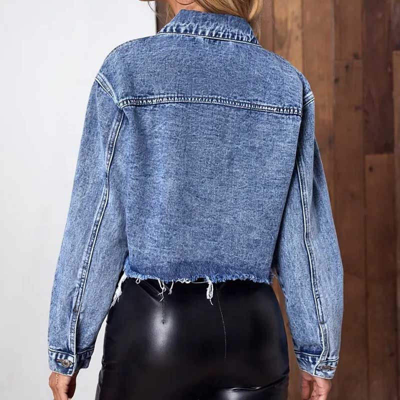 Veste en jean matelassée de haute qualité pour femmes, col rabattu classique, élégante et décontractée, doublure en nylon, usine OEM