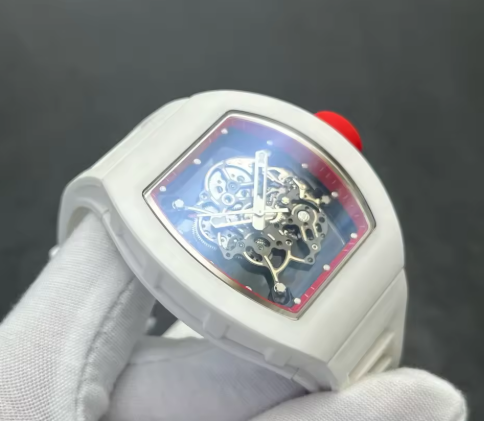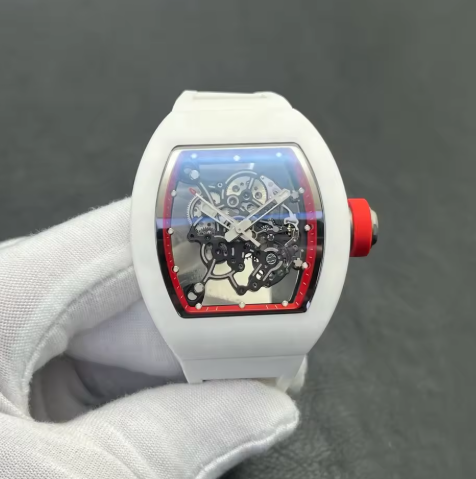 Montre mécanique en céramique blanche entièrement automatique de haute qualité RM 055, analogique, avec bracelet en caoutchouc, verre saphir, étanche 3 BAR