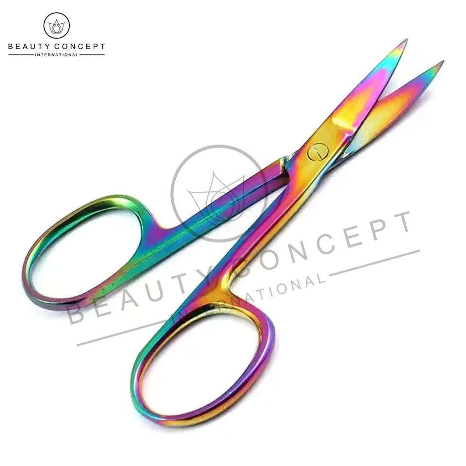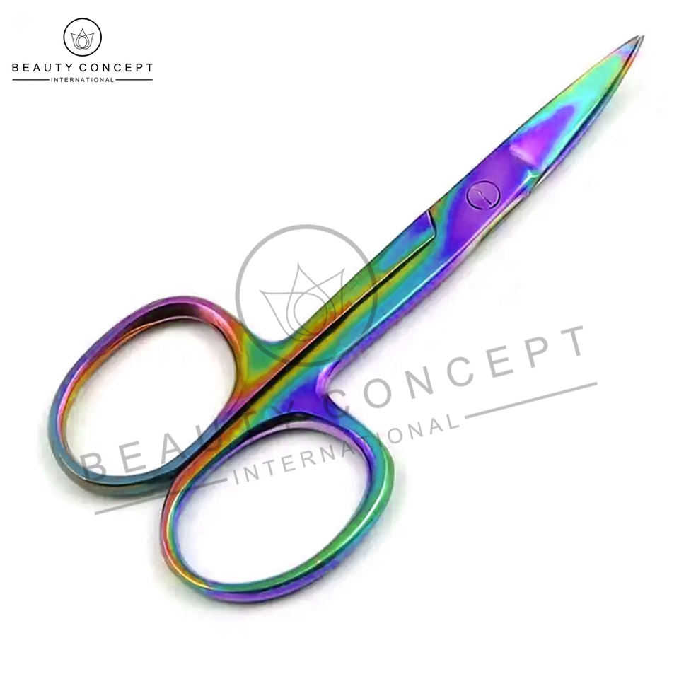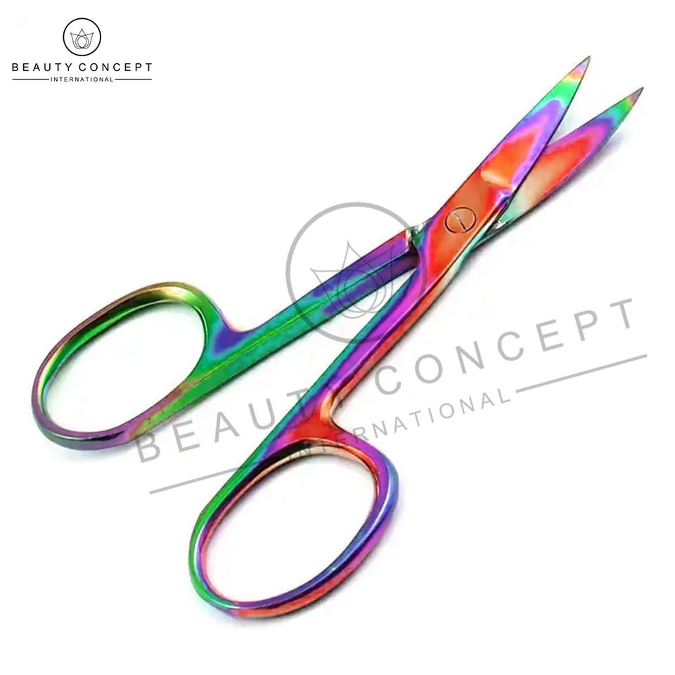 High Quality Rainbow Manicure Scissors Own Logo Print Latest Cuticle Beauty Concept Sustainable Nail Care Curved Blade