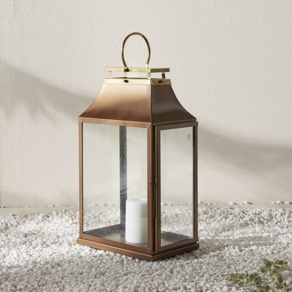 Porte-bougie en métal bicolore doré-brun de haute qualité Lanterne Style classique fait à la main pour les décorations de Noël à la maison