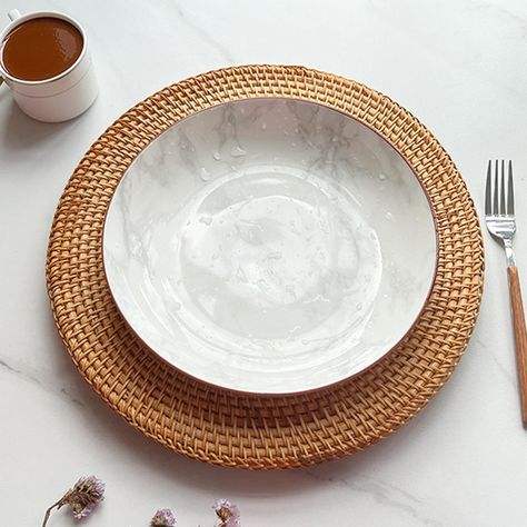 Assiettes de chargeur en rotin de haute qualité avec motif végétal pour restaurants et événements haut de gamme offres d'achat en gros