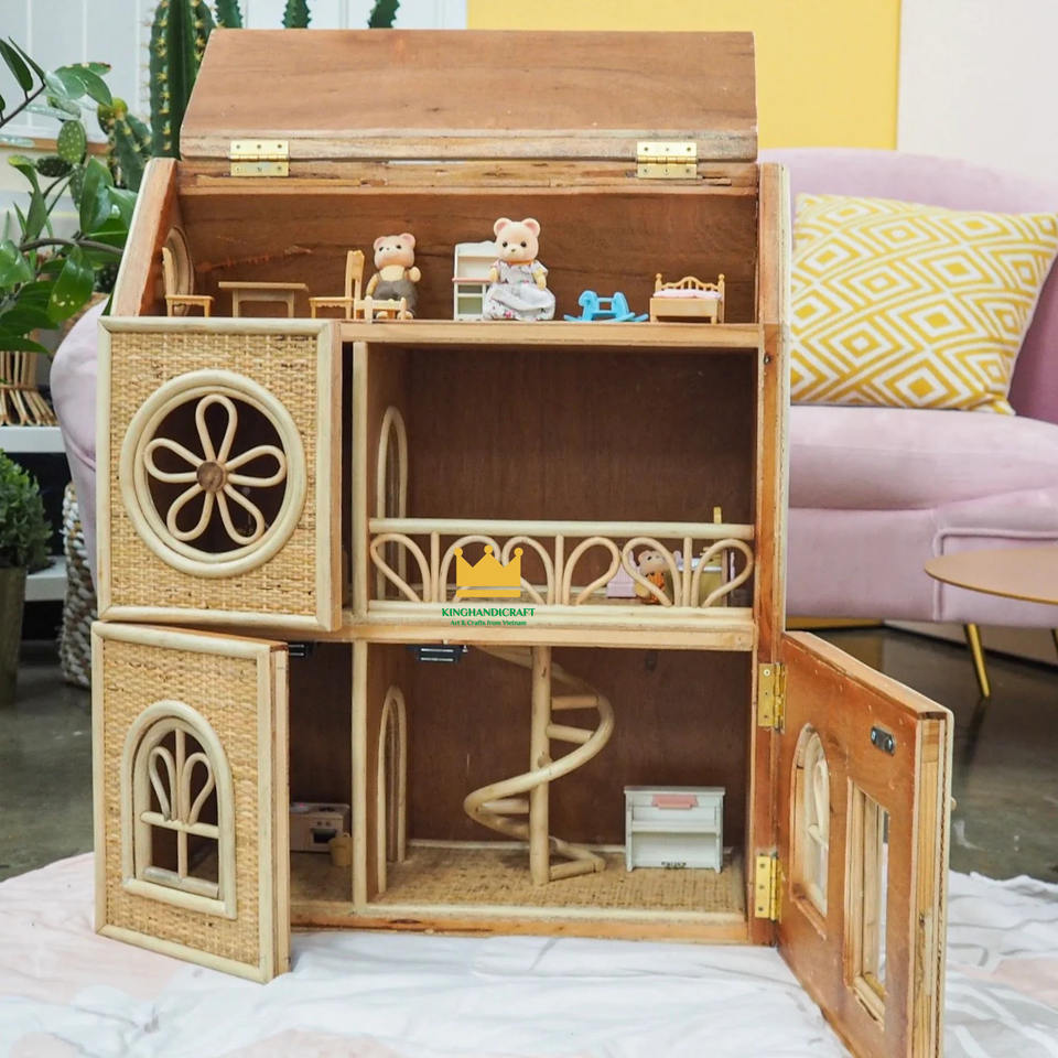 Maison de poupée en rotin de haute qualité 2 étages cinq chambres luxueuses