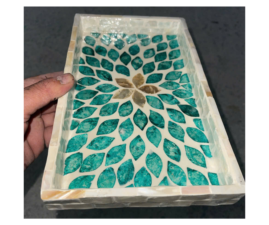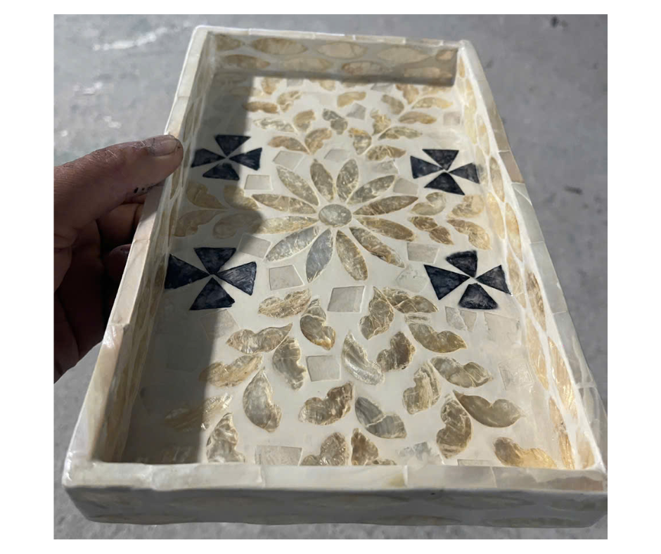 Plateau de rangement en rotin de haute qualité avec incrustation de perles, directement du fournisseur vietnamien - Plateau organisateur naturel