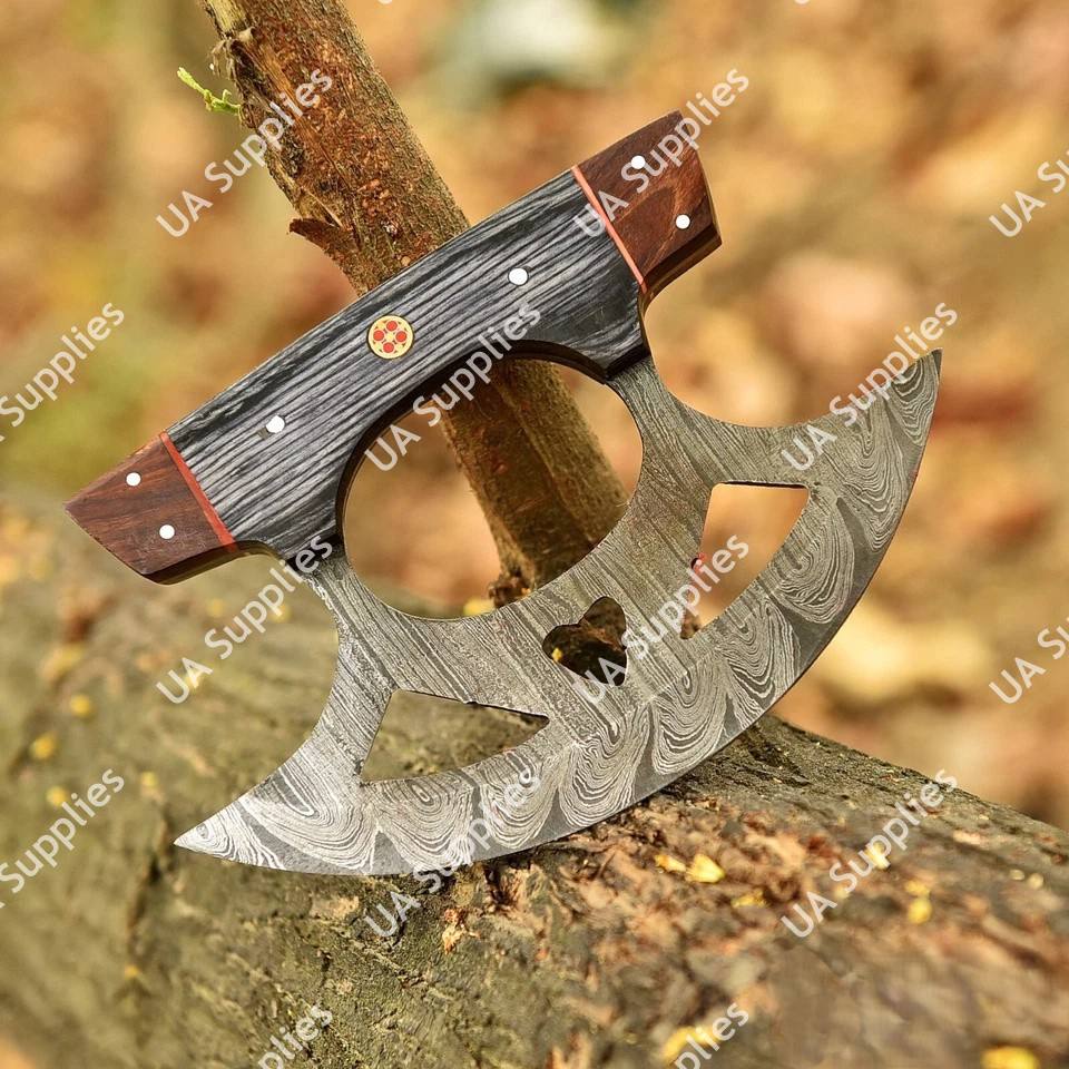 Couteau de chef de cuisine Ulu d'Alaska en acier de Damas