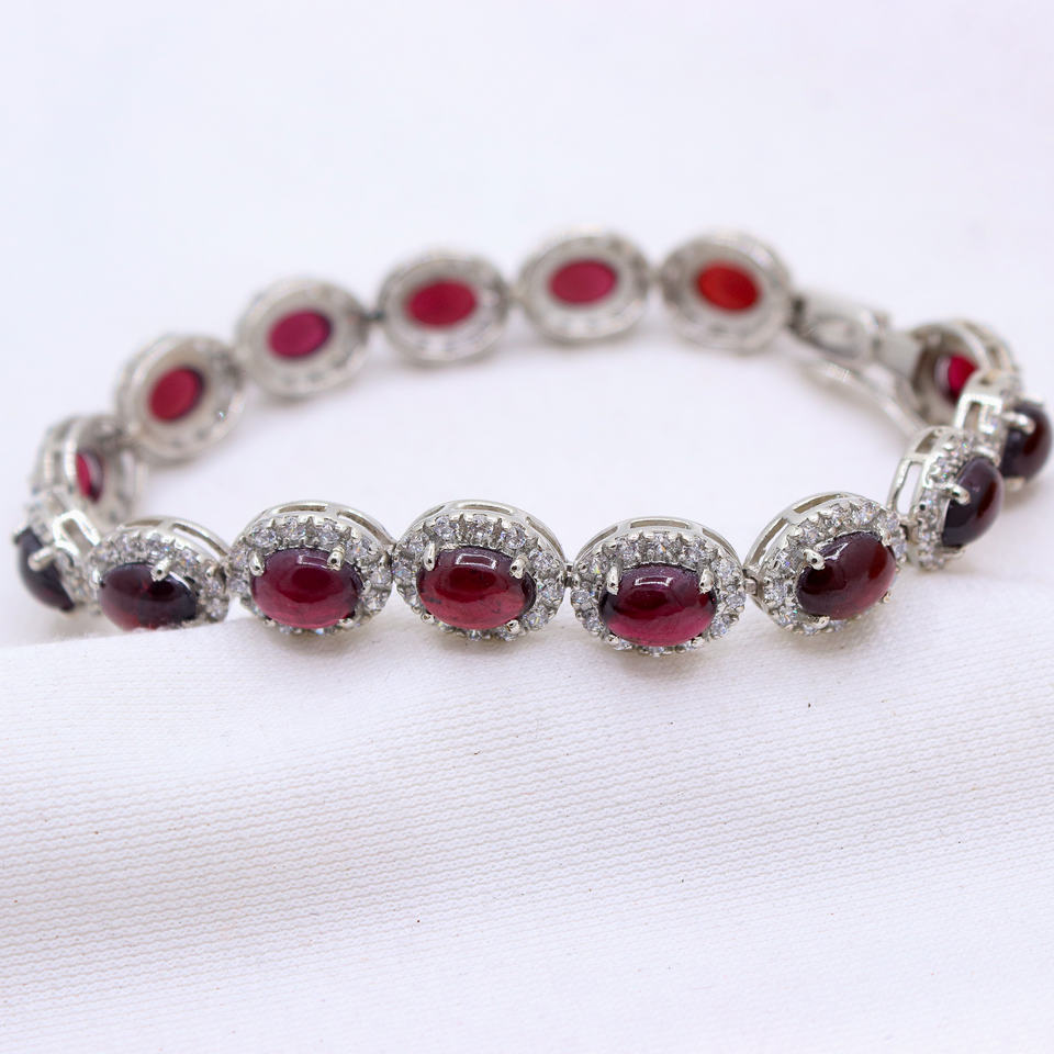 Grenat naturel avec des bracelets d'argent de la CZ