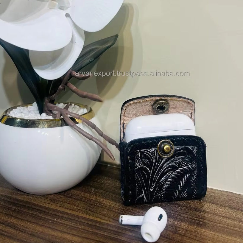 Haute qualité véritable fait à la main en cuir gravé élégant Air Pod couvre étuis de voyage personnalisés de protection accessoires de téléphone utilisés quotidiennement