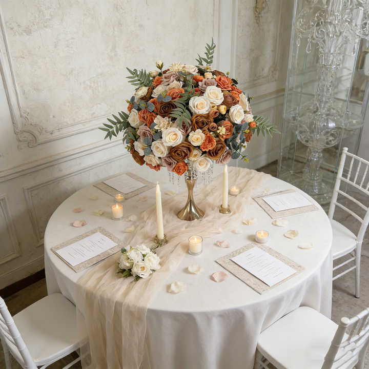 Boule de fleurs artificielles en soie de haute qualité, réaliste, romantique, moderne, tons terreux, centre de table de mariage, taille personnalisable