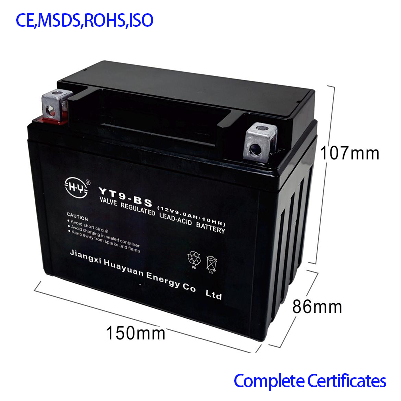 Batterie de moto rechargeable 12V 9Ah de haute qualité, scellée, à décharge profonde, au plomb-acide, pour démarrage YT9-BS