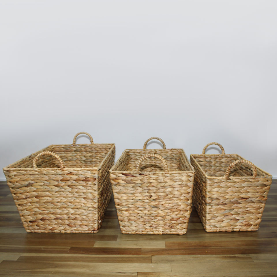 Panier de rangement Rectangle de haute qualité tissé à la main en bambou jacinthe d'eau poignée pliable blanchisserie maison vie