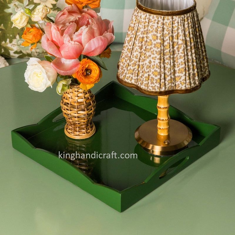 Plateau de service rectangulaire en bois laqué artisanal de haute qualité, écologique et décoratif pour la restauration, les hôtels et les restaurants