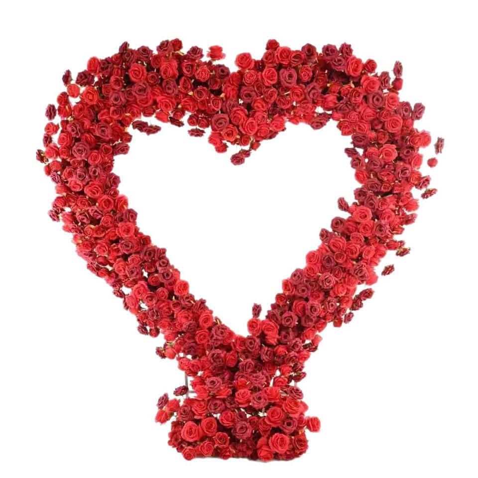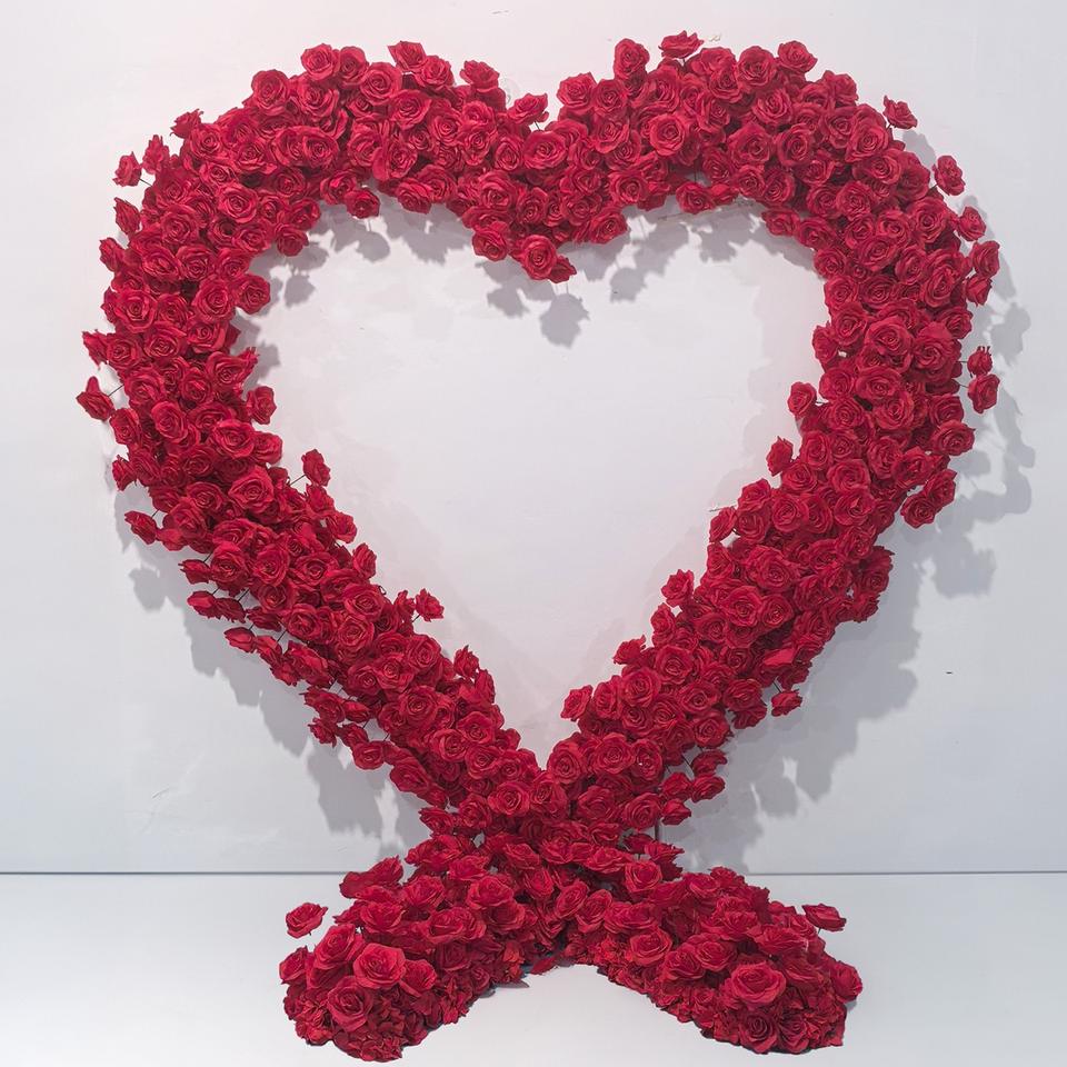 Arche de fleurs en forme de cœur rouge de haute qualité avec fond rouge en fleurs fraîches pour les événements de fête et de mariage