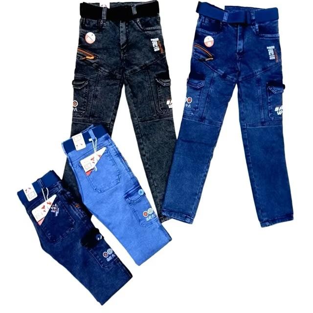 Haute qualité coupe régulière tricoté tissu coton imprimé garçons Cargo Style Denim salopette Hip Hop multi-poches lavé pantalon