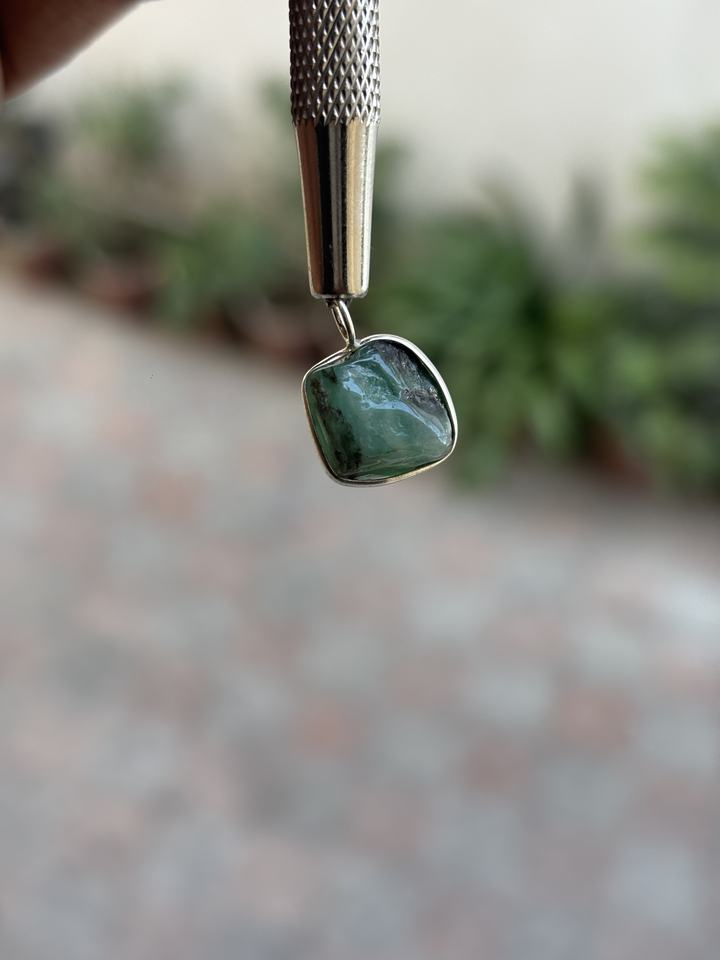 Pendentif de haute qualité en argent sterling 925 fait main avec émeraude naturelle brute sertie clos, idéal pour les fêtes