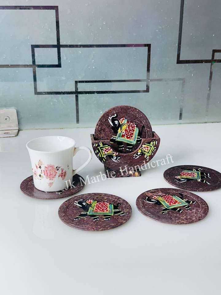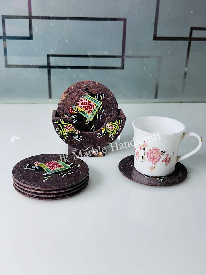 Ensemble de sous-verres en marbre de haute qualité, design religieux, faits à la main, polis, durables, décoration d'intérieur, motif circulaire