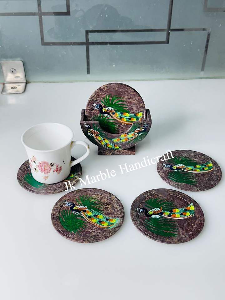 Ensemble de sous-verres en marbre de haute qualité au design religieux, faits à la main, polis, durables, décoration d'intérieur pour le thé/le café