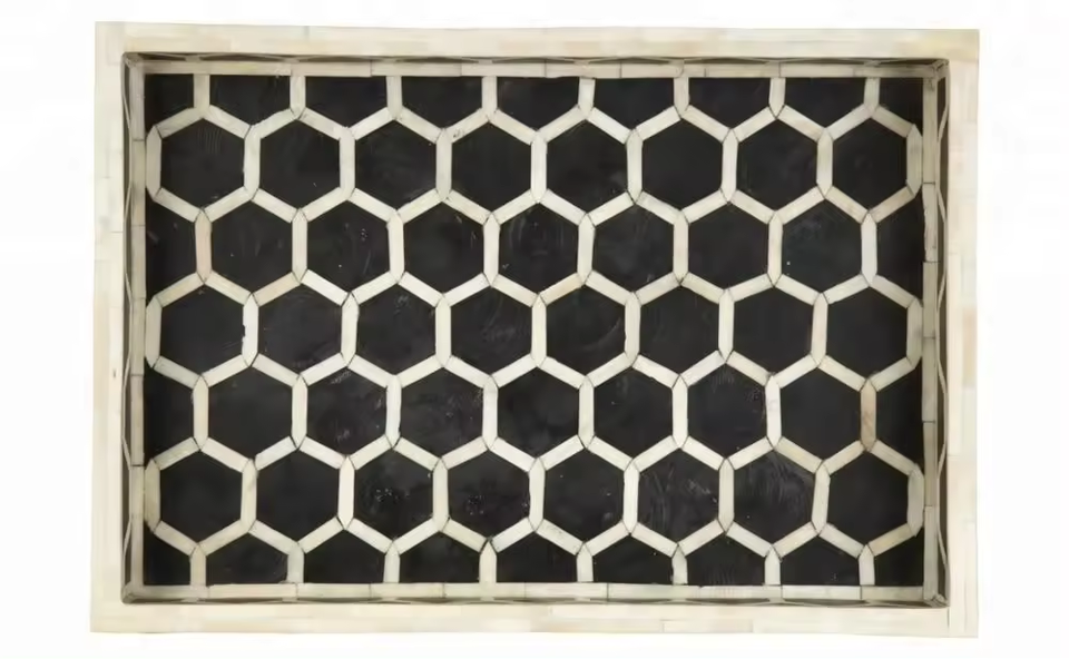 Plateau de service en résine de haute qualité Incrustation d'os acrylique en forme de rectangle unique pour le service de restaurant d'hôtel par l'artisanat en croissant