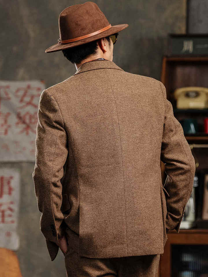 Veste en laine marron pour hommes en tweed britannique rétro de haute qualité simple boutonnage costume mince Blazer plat rembourré décontracté