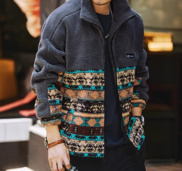 Veste en laine d'agneau rétro de haute qualité pour hommes, veste en polaire ample et épaisse pour l'automne et l'hiver