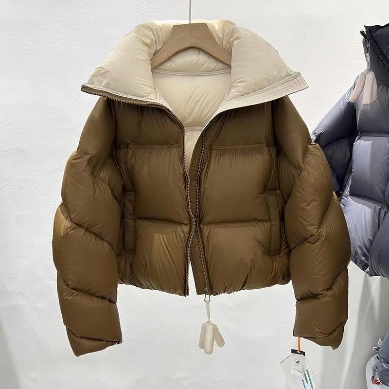 Parka bomber rembourrée courte pour femme, de haute qualité, réversible, à paillettes, imperméable, tricotée, brillante, épaisse et chaude pour l'hiver