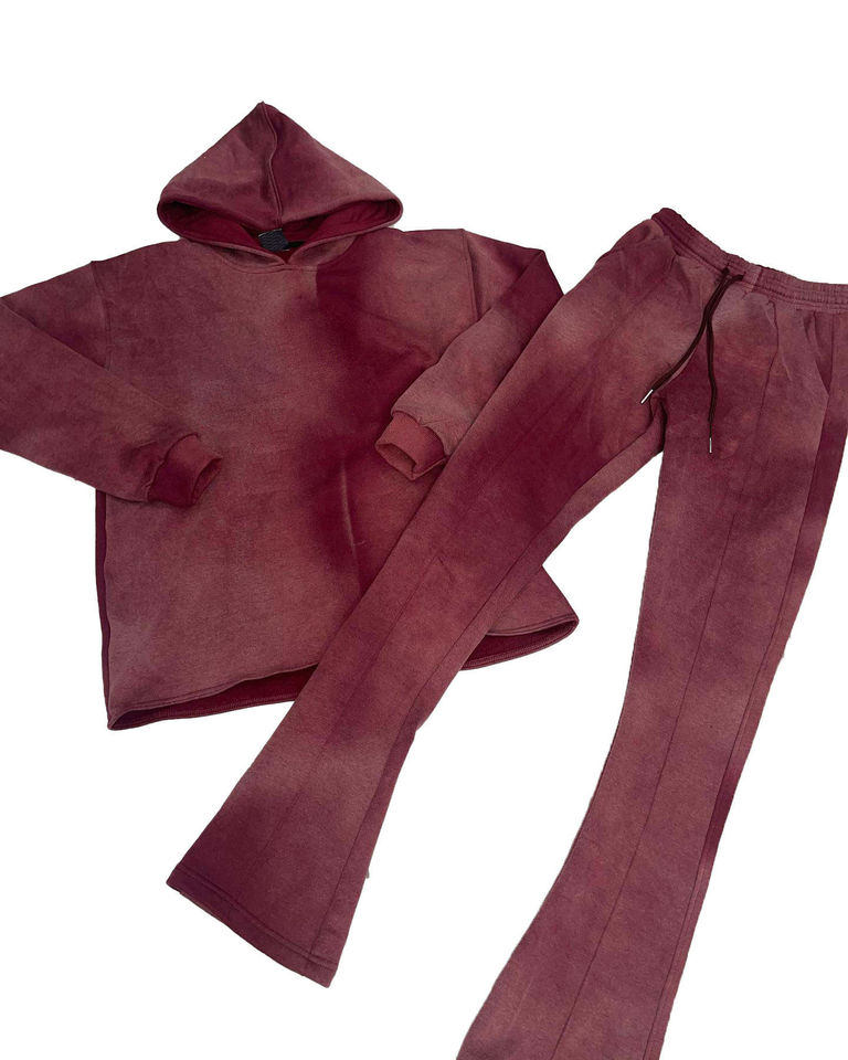 Ensemble 2 pièces de survêtement d'hiver pour homme, pantalon évasé délavé à l'acide avec strass de haute qualité, fermeture éclair, 100% coton, OEM