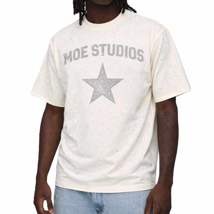 T-shirt pour homme de haute qualité orné de strass, col rond, manches courtes, coupe classique, production OEM pour les marques de streetwear