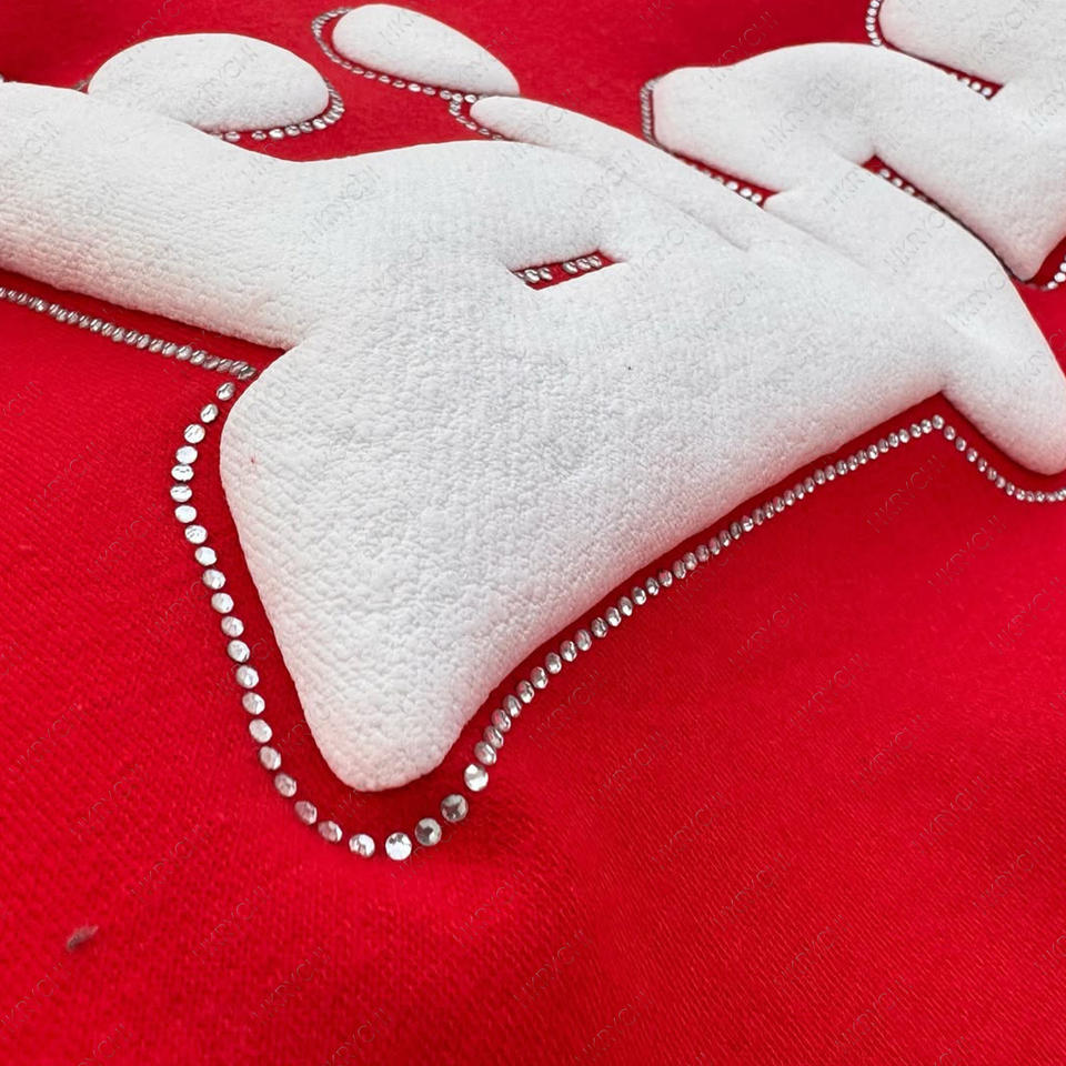 Impression de strass de haute qualité pour sweat-shirt personnalisé 360GSM lourd 100% coton col rond streetwear unisexe coupe régulière