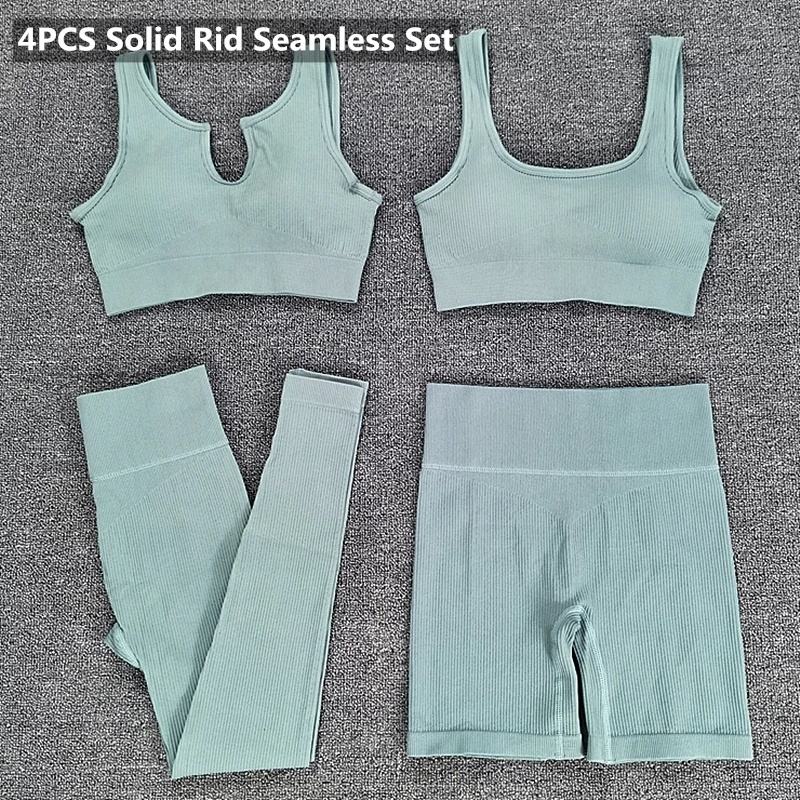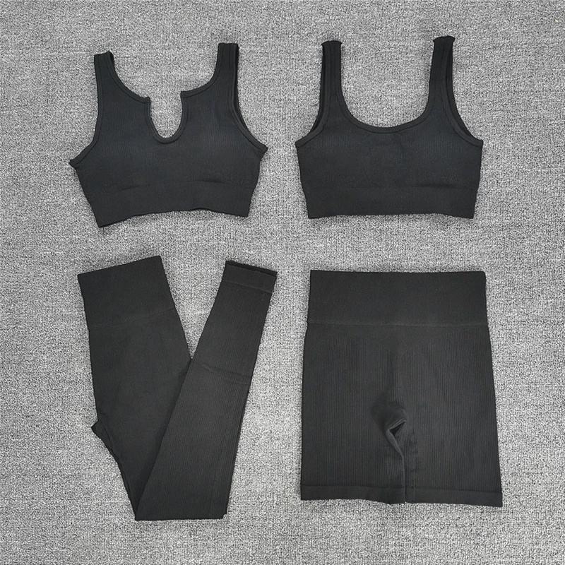 Ensemble de Yoga côtelé 2 pièces, sans couture, Logo personnalisé, 4 pièces, short, Leggings de gymnastique, soutien-gorge pour femmes
